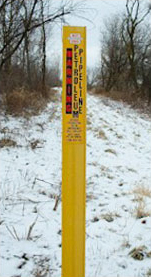 Warning signs, pilot patrol markers, casing vents and post are used to mark a pipeline vicinity. They are within tolerance zone of the pipeline. The depth of the facility will vary, depending on many different factors such as soil erosion, grading, landscaping, etc.